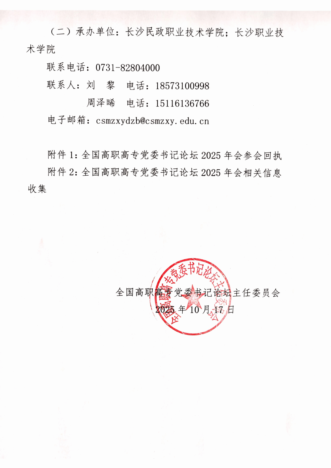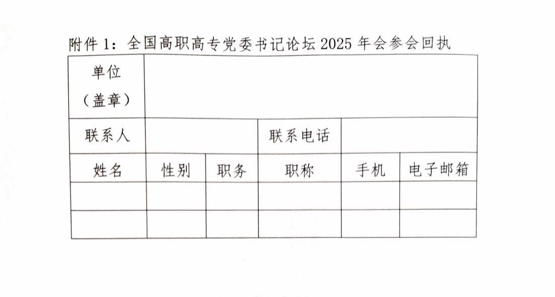 附件1:全国高职高专党委书记论坛2025年会参会回执