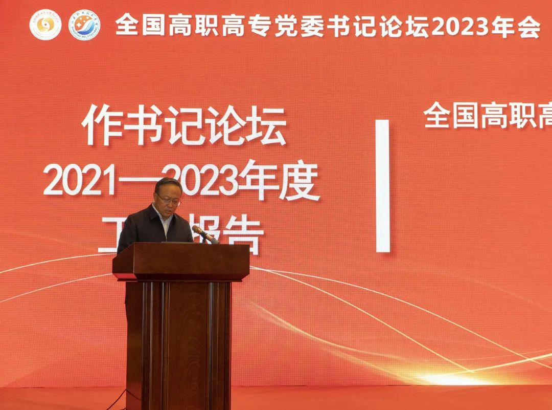 书记论坛副主任委员、重庆工程职业技术学院党委书记易俊以《聚焦“四大维度”,构建“大思政课”育人体系》为主题、甘肃农业职业技术学院党委书记薛仰全以《高质量党建引领学校高质量发展》为主题、江苏建筑职业技术学院党委书记朱东风以《实施“123”大思政课创新工程 践行高职院校立德树人使命担当》为主题、广东松山职业技术学院党委书记方迎生以《以“三个始终坚持”推动学校事业高质量发展》为主题、温州职业技术学院童卫军研究员以《深化职业院校治理研究 推进职业教育高质量发展》为主题作了报告。