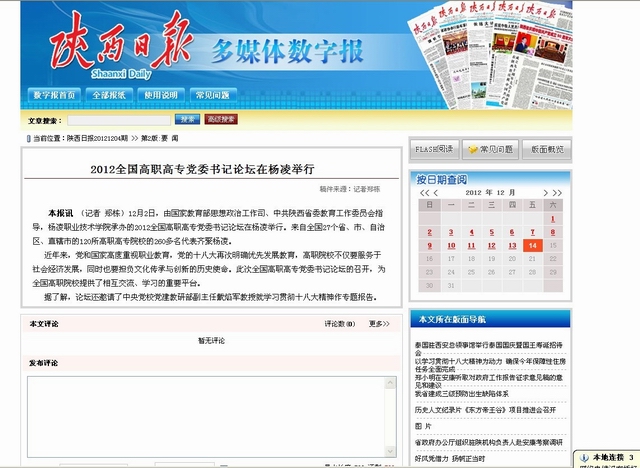 [陕西日报]:2012全国高职高专党委书记论坛在杨凌举行