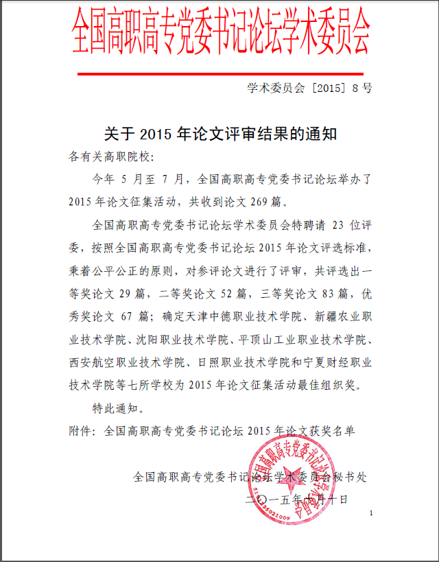 关于2015年论文评审结果的通知