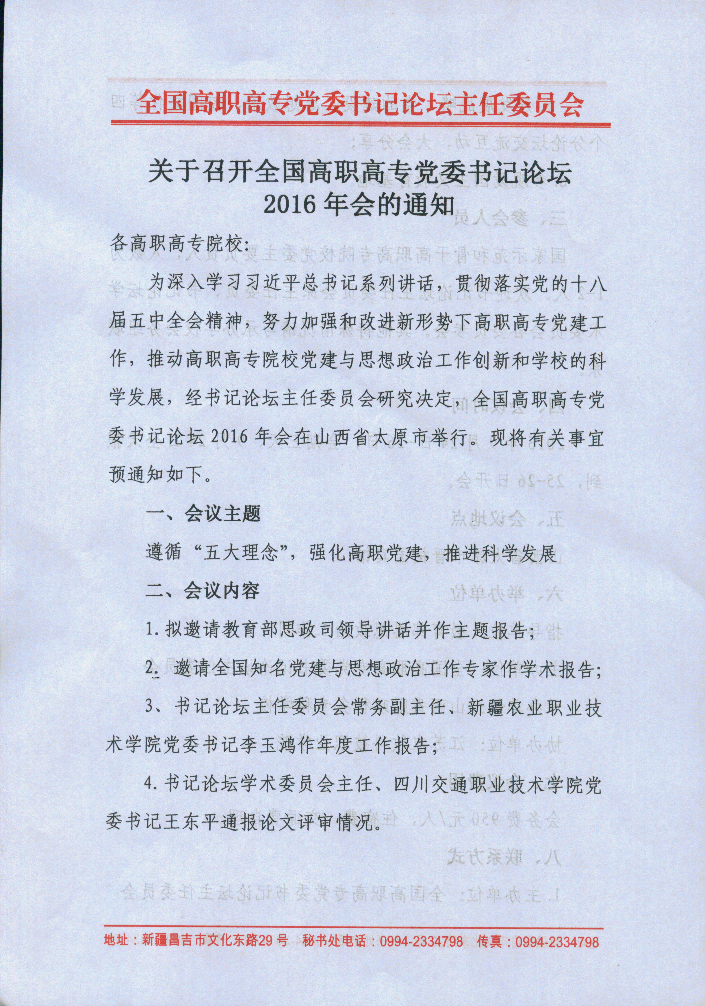 高职高专党委书记论坛2016年会的通知