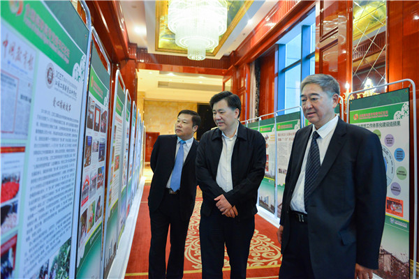 我校党委书记张亚杭、校长易俊陪同参会代表参观成果展