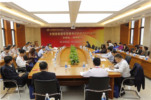 (张洪冲、钟世潋)10月24日下午,全国高职高专党委书记论坛2015年年会思想政治分论坛在重庆工程职业技术学院江津校区第二会议室举行。与会的高职高专院校党委书记齐聚一堂,对新形势下高职高专院校的思想政治工作创新展开了交流与讨论,分论坛由南京工业职业技术学院党委书记尤建国主持。