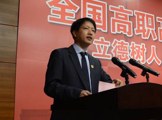 中共天津市委教育工委副书记、天津市教委副主任孙志良讲话。他指出:天津市委教育工委和天津市教委始终将推动与发展职业教育作为工作重点,出台了一系列促进职业教育改革发展的政策措施,不断提高职业教育的办学水平和吸引力。同时着力提高各高职院校党建水平、大学生思想政治教育水平和社会主义核心价值观教育水平。