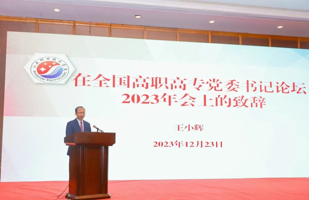 中共汕头市委书记温湛滨出席并致辞。他指出,全国高职高专党委书记论坛在汕头召开,是汕头职业教育系统的一件大事、喜事,对汕头打造区域教育高地、走好走实“工业立市、产业强市”之路具有重要意义。近年来,汕头认真贯彻落实习近平总书记关于职业教育的重要论述精神,坚持把职业教育摆在更加突出的位置,牢牢把握服务现代产业数字化、智能化、绿色化发展方向,推动全市职业教育办学质量持续提高、专业设置全面优化、产教融合加快发展,走出了一条具有汕头特色的职业教育发展新路。希望与会专家学者为汕头职业教育发展规划、重要教育政策提供咨询、献计献策,助力我市办出一流教育。欢迎全国各地高职高专院校与汕头深入开展产教融合、校企合作,推动我市实施“百千万工程”、打造现代化产业体系,实现经济高质量发展。